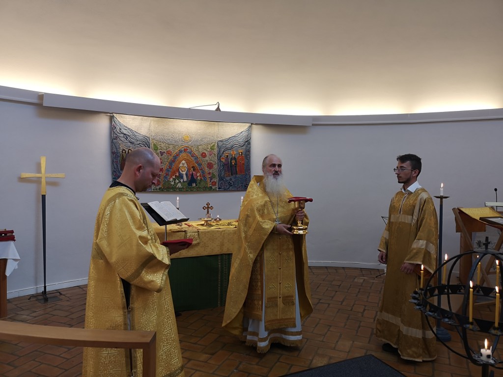Med fader Ioanns välsignelse: I helgen hade vi glädjen att välkomna fader Pavel med följe till Umeå för en välsignad helg i Guds namn. Den 7:e augusti döptes Halvard i Nydalakyrkan efterföljt av myrrasmörjelse av Hilarion och därefter kvällsgudstjänst. Må Gud ge dem många år!