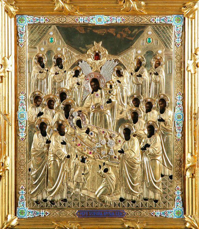 Troparion: Välsignad är Du, Kriste vår Gud, Du som gjorde fiskafängarna allvisa, i det Du över dem sände den Heliga Ande och genom dem hopsamlade all världen. O Du Människoälskande, ära vare Dig!