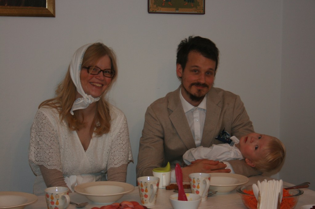 God fest! I söndags firade vi Pingst eller den Heliga Treenighetens dag och det hölls gudstjänst med fader Andrej, och Nikolaus blev upptagen i Kyrkan med dop. Efter en intensiv dag med dop och långvarig gudstjänst samlades vi som vanligt runt bordet för en gemensam måltid. Tack till fader Andrej och alla medverkande för en välsignad helg, till den Heliga Treenighetens, vår Guds, ära!