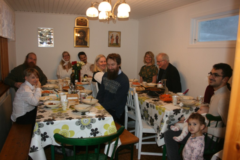 I söndags hölls gudstjänst med fader Andrej. Till vår stora glädje hade vi studiebesök från ALT (Akademi för Ledarskap och Teologi), frikyrkans framtida pastorer. Efter gudstjänsten samlades vi, i vanlig ordning, för en gemensam måltid med god mat och fruktsam diskussion.