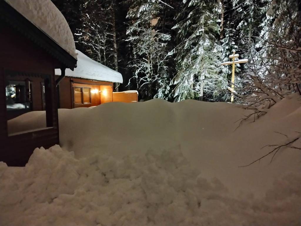 I år hade vi den stora välsignelsen att fira den heliga Theofanian, Herrens dop, den 19:e (6:e) januari, med vaka och den gudomliga liturgin vid midnatt. Firandet började dagen innan, med prästledd typika och de kungliga timmarna; sedan samlades vi åter sent på kvällen för den festliga vigilian med litia och gudomliga liturgin in på morgontimmarna; vi avslutade med den stora vattenvälsignelsen och en gemensam festmåltid.