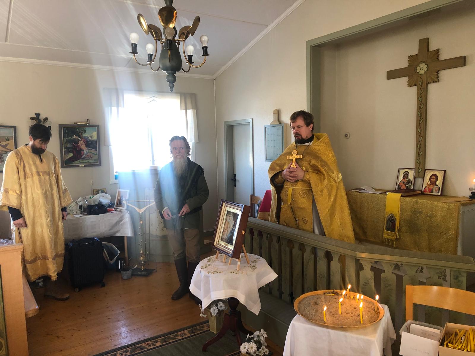 Denna gång samlades vi för att be Vigilia samt fira Liturgi med anledning av festen som brukar infalla ungefär i mitten på den Stora Fasta, nämligen Gudaföderskans Bebådelse; Ärkeängelns Gabriels glädjebudskap till Jungfrun Maria om att Hon skulle bliva havande och föda en son med namnet Jesus, Vilken skulle bliva stor och kallas den Högstes Son, samt att Herren Gud skulle giva Honom Hans fader Davids Tron.