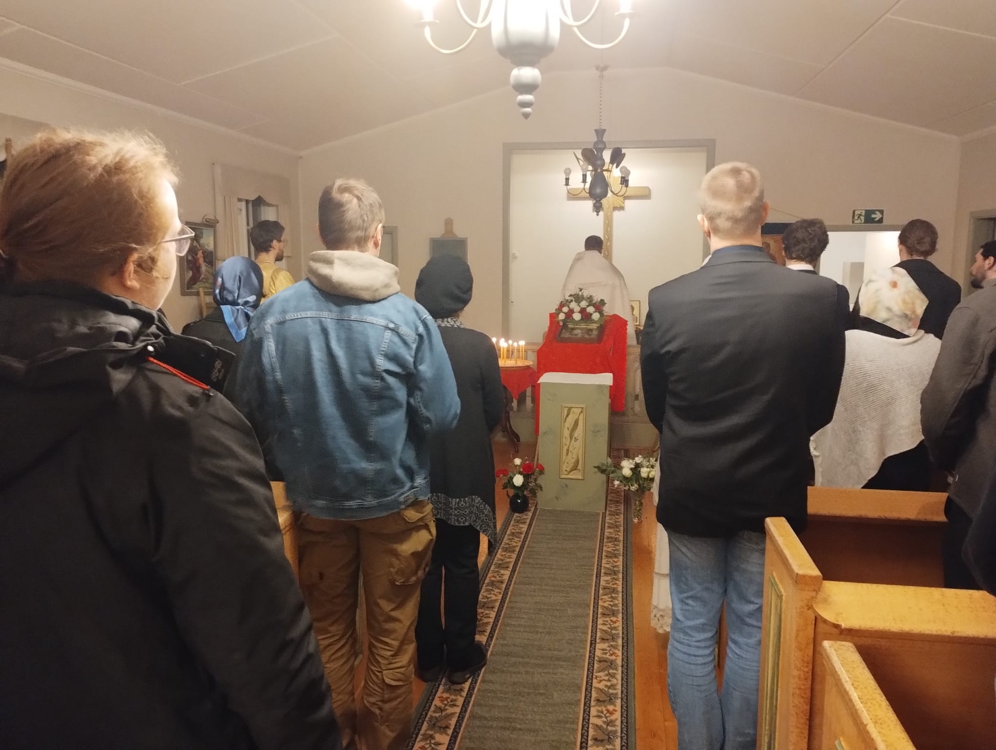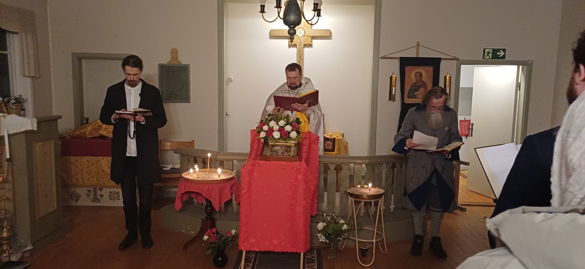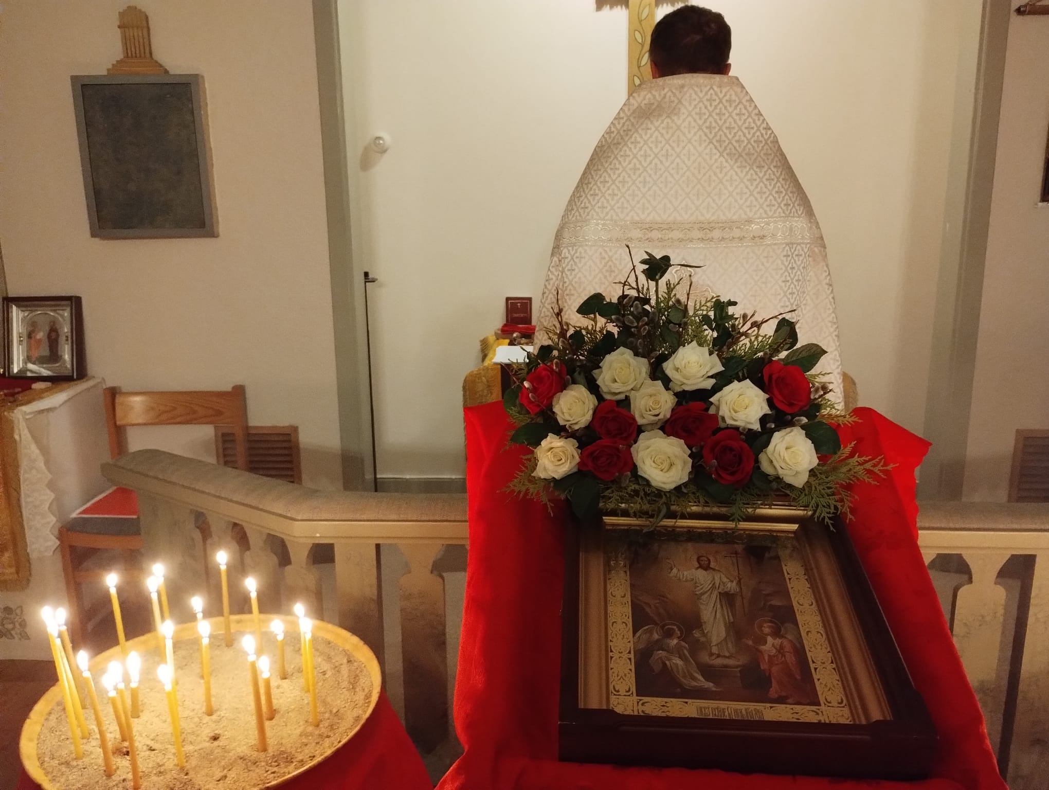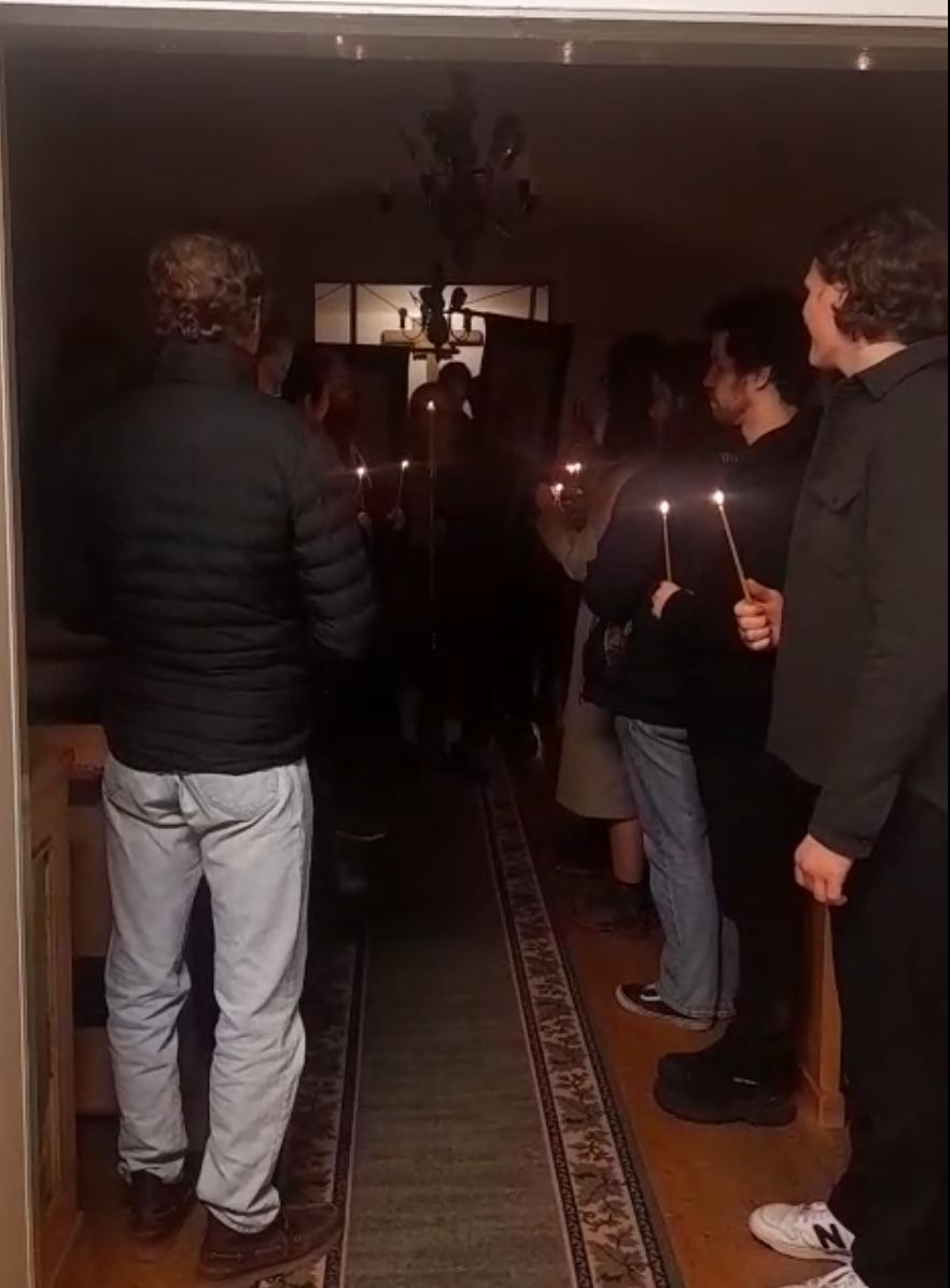 På den stora och heliga Påskens afton samlades församlingen för att mottaga Kristi Uppståndelses livsbringande ljus och glädje. Denna utvalda och heliga dag som bekant ju är festdagarnas fest och högtidernas högtid på vilken vi välsigna Kristus i evigheter, ty från döden till livet och från jorden till himmelen har Kristus, vår Gud, fört oss fram, vi som sjunga segersången; Honom har vi på jorden förlänats att med änglarna i himlarna lovsjunga; Honom som vi äro befästade i — Kristus, rättfärdighetens Sol, som framstrålar liv åt alla; som efter att hava nedstigit till jordens innandöme framträder ur graven lik en brudgum för att i kärlek uppresa med Sig Sin brud: alla de som hava älskat Hans tillkommelse; de troende — Hans Kyrka. Han är sannerligen fridens Konung och våra själars Frälsare. Låtom oss därför falla ned inför Kristi heliga uppståndelse. Ty se, genom Korset har glädje kommit till all världen; genom att uthärda korsfästelsen har vår Gud övervunnit döden genom sin död.