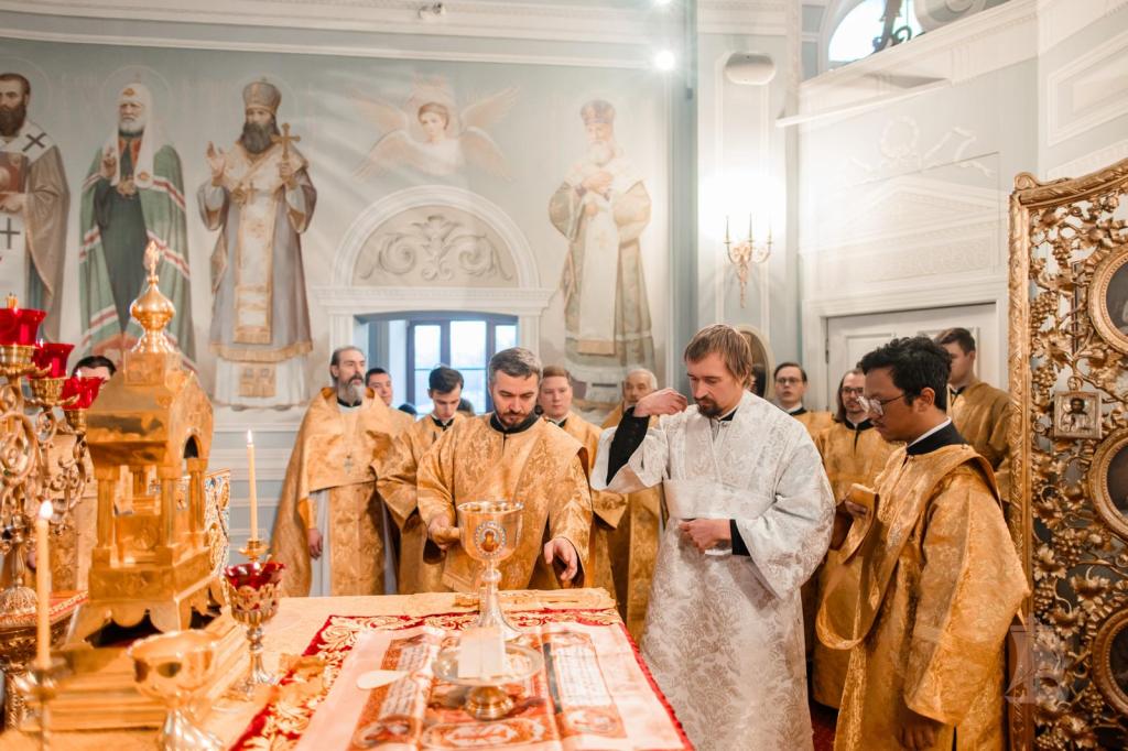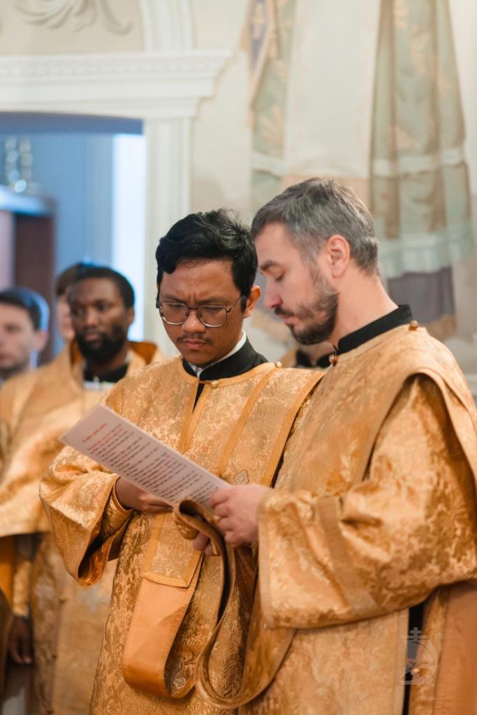 Idag, för första gången i Sankt Petersburgs teologiska skolas mer än 300-åriga historia, har en svensk student som kommit för att studera hos oss från Konungariket Sverige ordinerats till diakon i denna kyrka! Vi gläder oss över att den ortodoxa kyrkan denna dag har fått en ny ämbetsbärare!