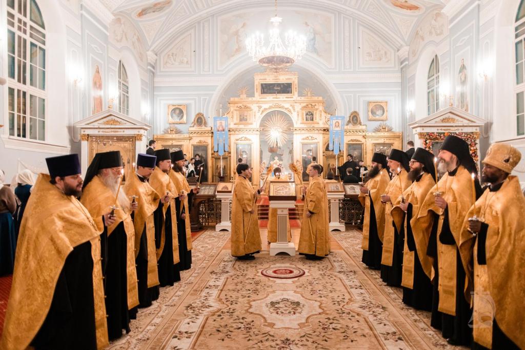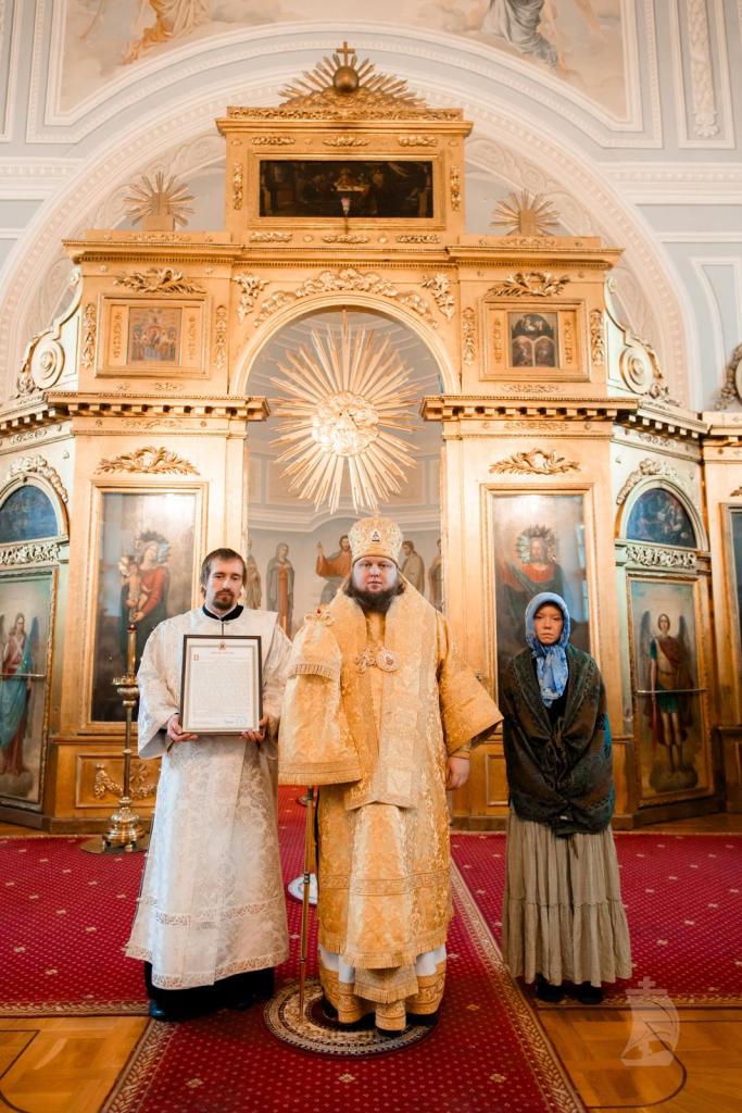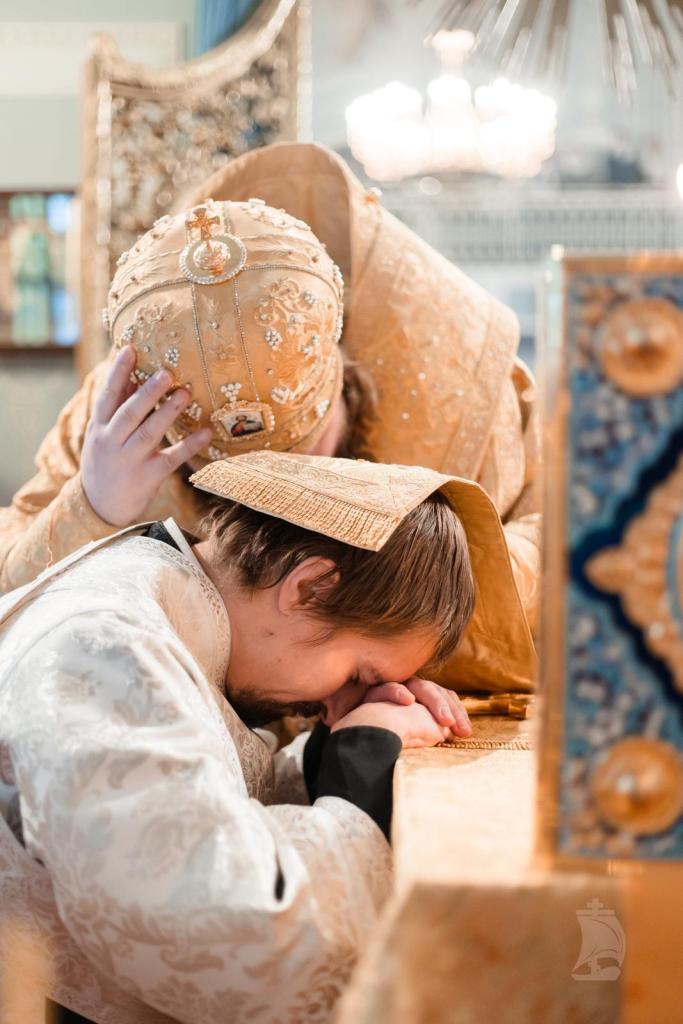 Akademins rektor, biskop Silouan av Peterhof vände sig med vägledande ord till den nye diakonen:
